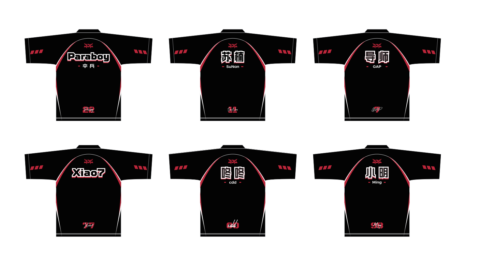 Featuring JDG PUBGM Division’s iconic lineup—Paraboy, Daoshi, Sunan, Xiao7, Dongdong and Xiaoming, each design is a tribute to their legendary legacy in esports.